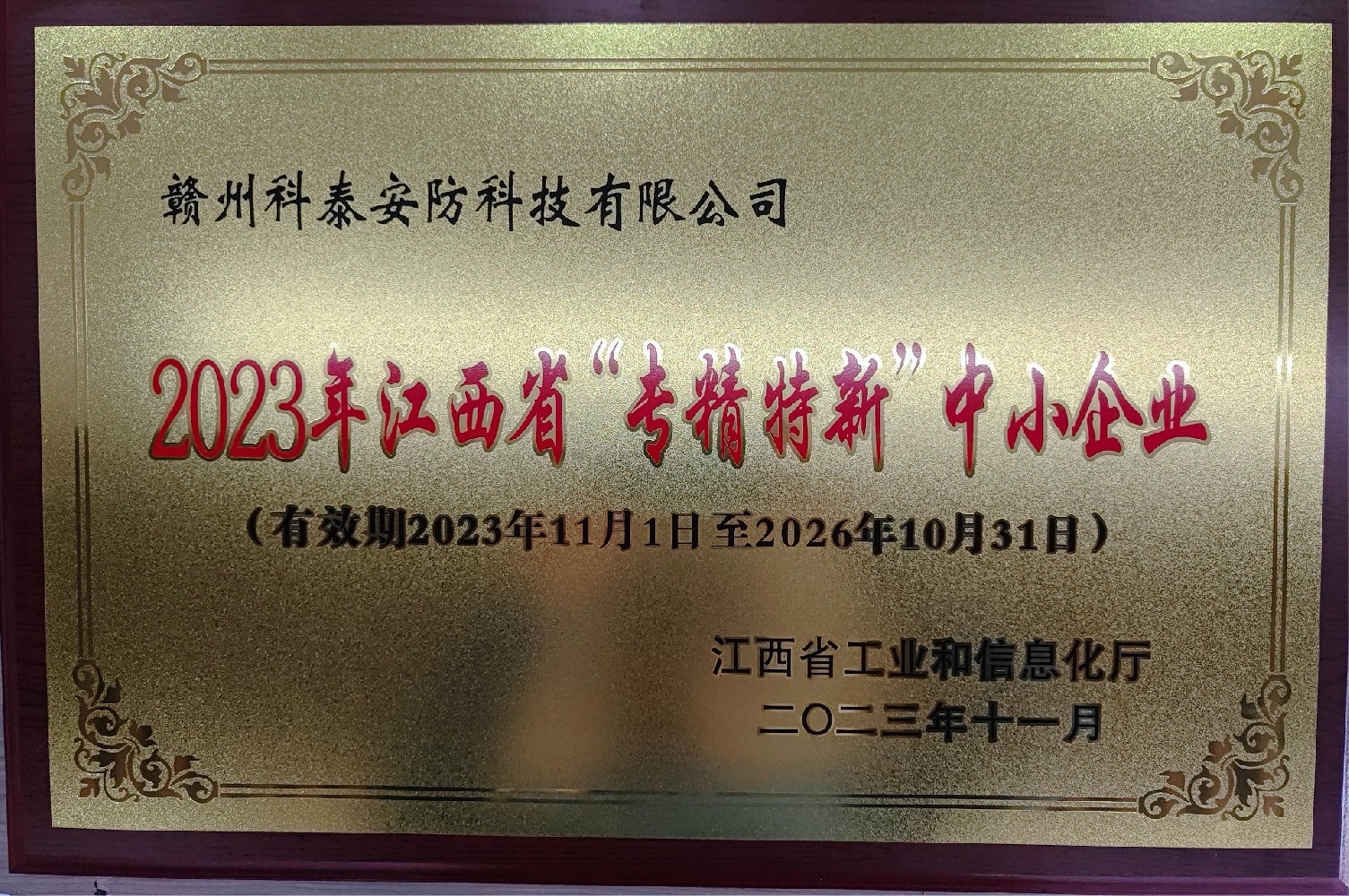 喜訊!贛州科泰安防科技有限公司榮獲“專(zhuān)精特新”中小企業(yè)榮譽(yù)獎(jiǎng)項(xiàng)